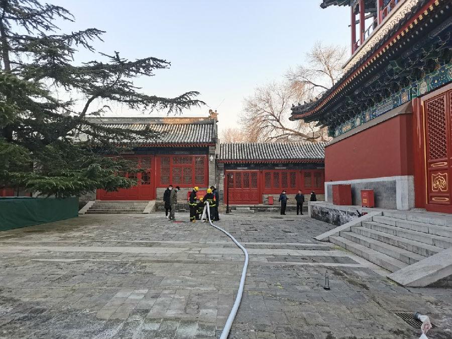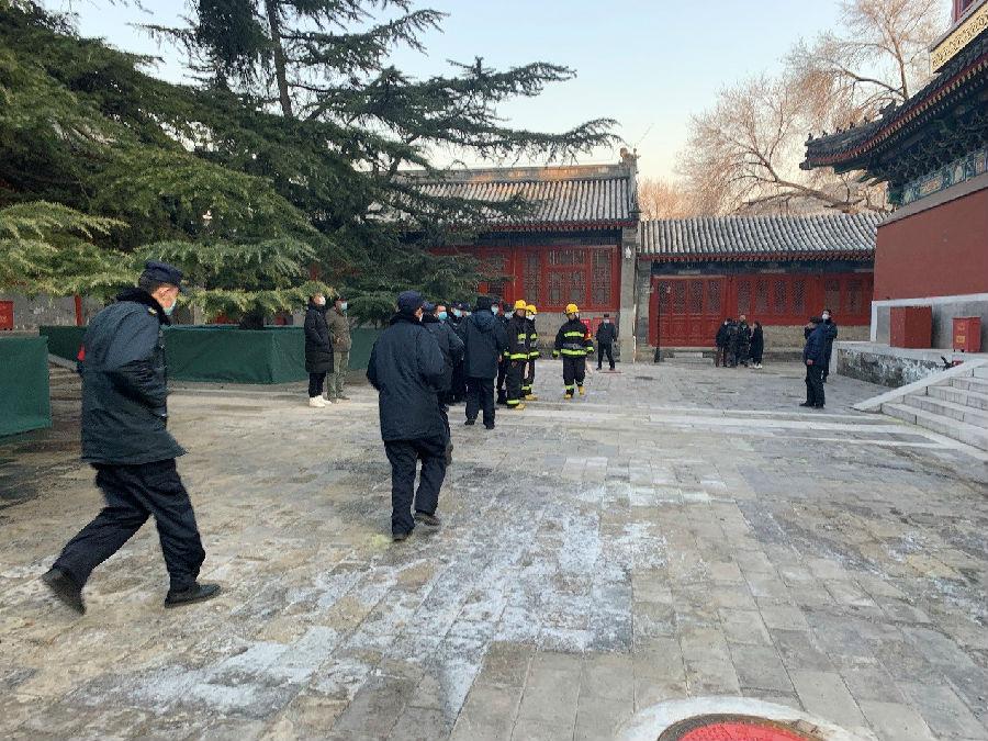 本次演练模拟万寿寺中路大禅堂突发火情。参与演练人员按照应急预案的流程和分工,认真开展了应急指挥、实施灭火、组织疏散、保护文物、抢救伤者、信息报送等应急处置工作。整个演练过程紧张有序,达到了预期目标。