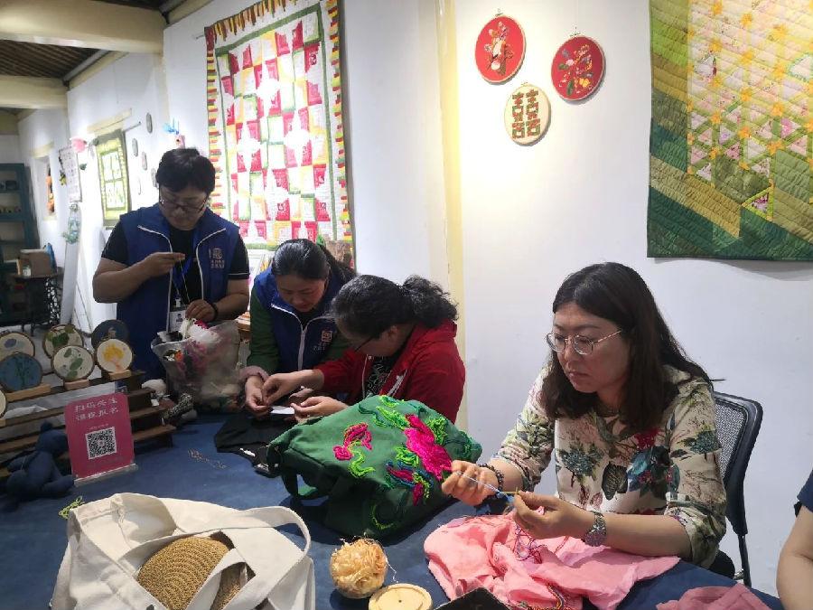 工作人员指导观众亲自动手,对旧衣物领口、袖口、裤口等处进行刺绣装饰,一朵朵七彩的花朵,让旧衣物焕然一新,也让生活充满色彩与温馨。